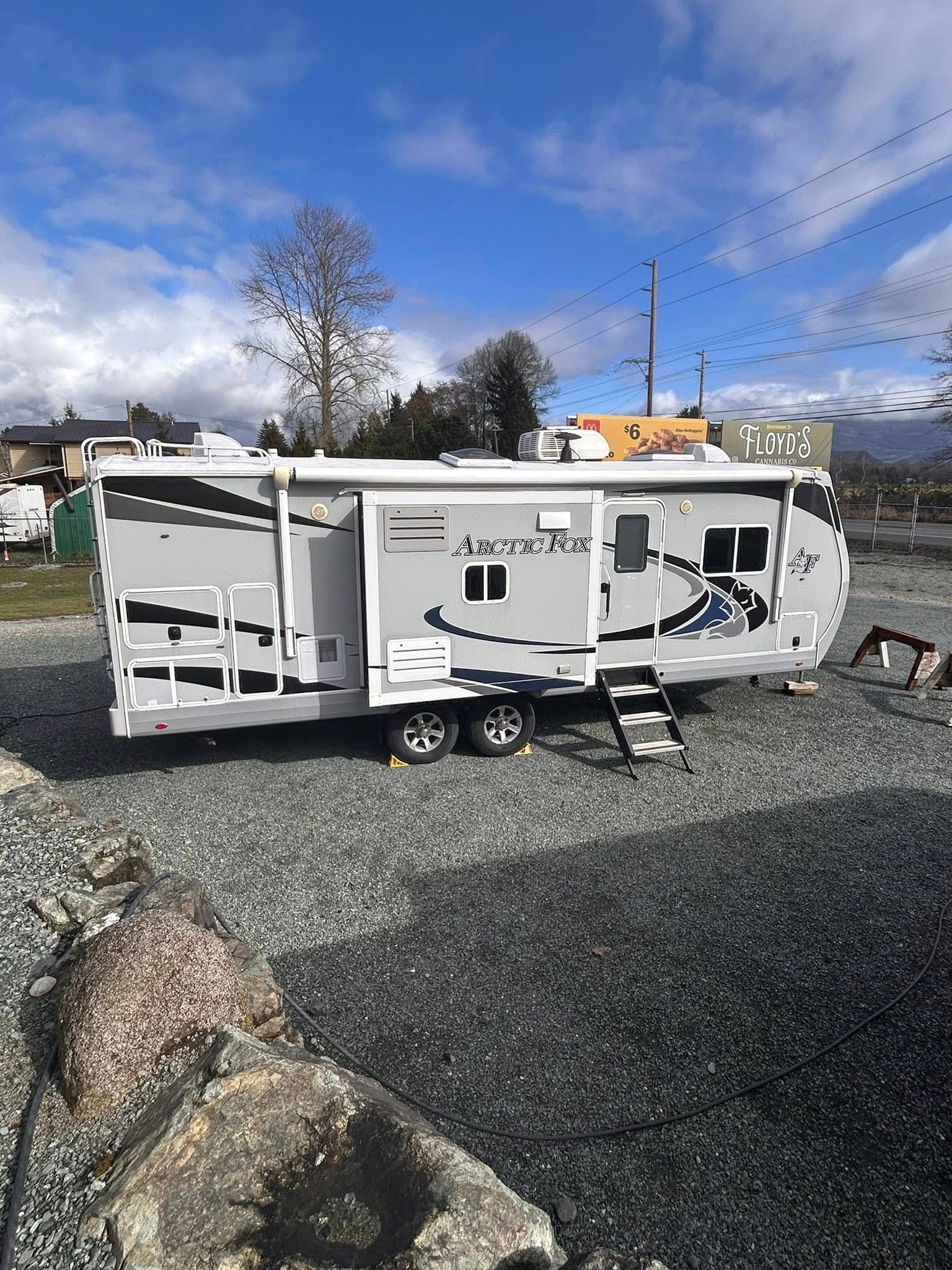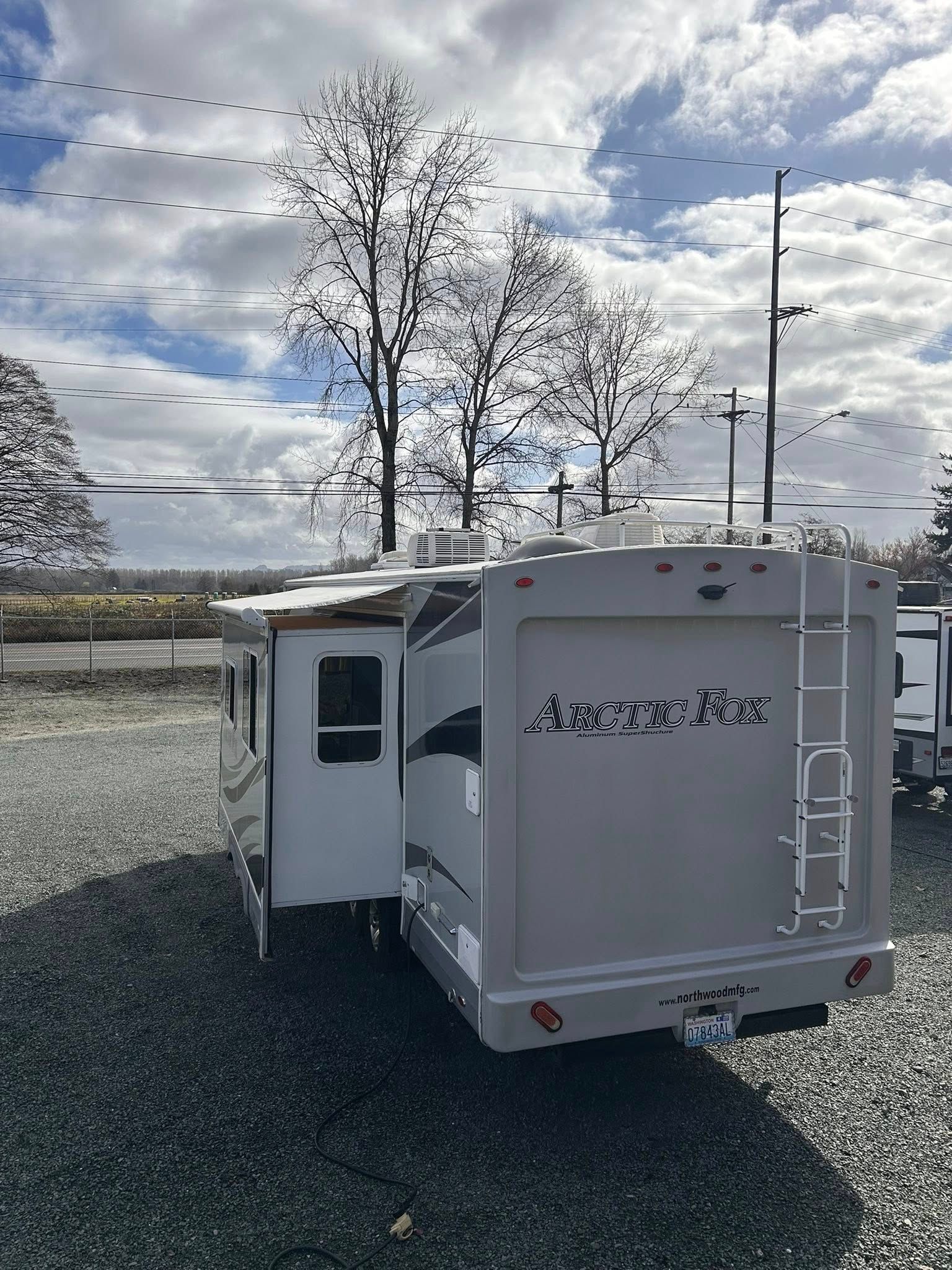 Artic fox is one of the best build trailers- construction is full fiberglass cap, aluminum frame. Four season ready - heated/ enclosed holding tanks, insulated luggage compartment and thermal pane windows. App 34’ in length 8’ wide - dry weight is app 8,302 lbs with a gross vehicle rating (GVWR) of 10,400 - 11,000 Ibs and a payload capacity over 2,400 Ibs. We run all our consignments through an inspection and fix all repairs needed - the following have been done: